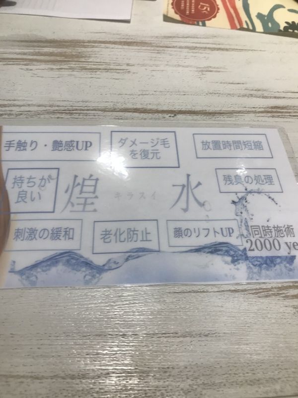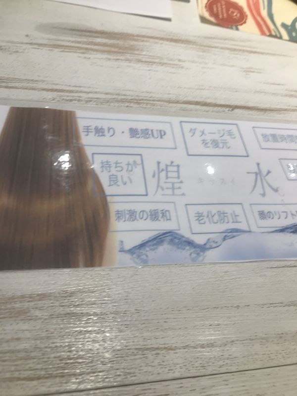 煌水! January 28, 2018 Author nozachin こんばんは(^_^) 間違いなく今月に新しく導入して、お客様からもスタッフからも大人気 「煌水」!! 簡単にご説明すると、カラーやパーマなどの前に地肌から毛先にかけて、テラヘルツ機能水をつけることで老廃物やアルカリ、金属など不要なものを取り除くお水です。 取り除くとダメージを復元したり、手触りやツヤ感がアップ。 老化防止の作用もあります! オススメですので是非体感してみてください(^_^) Tag